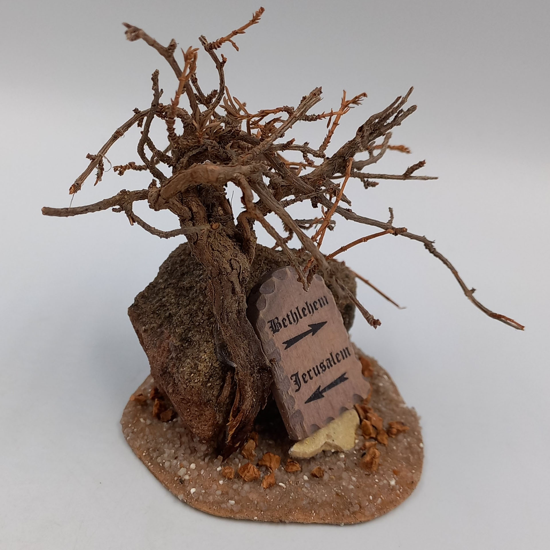 Zubehör Krippe Wegweiser orientalisch, auf Holzplatte geschrieben.